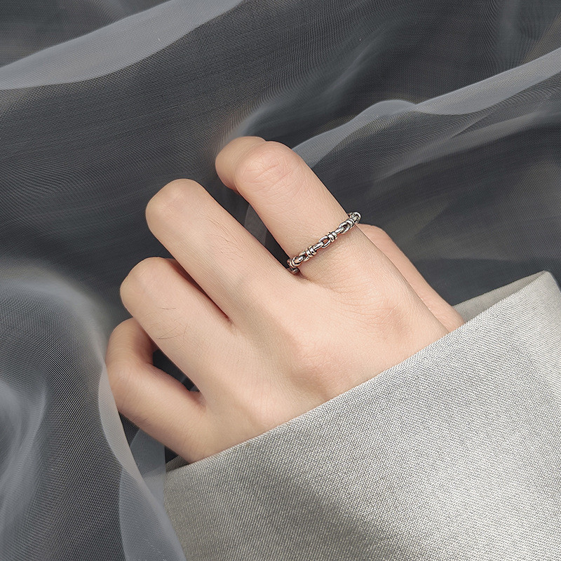 s925 sterling silver rhinestone bar weave ring