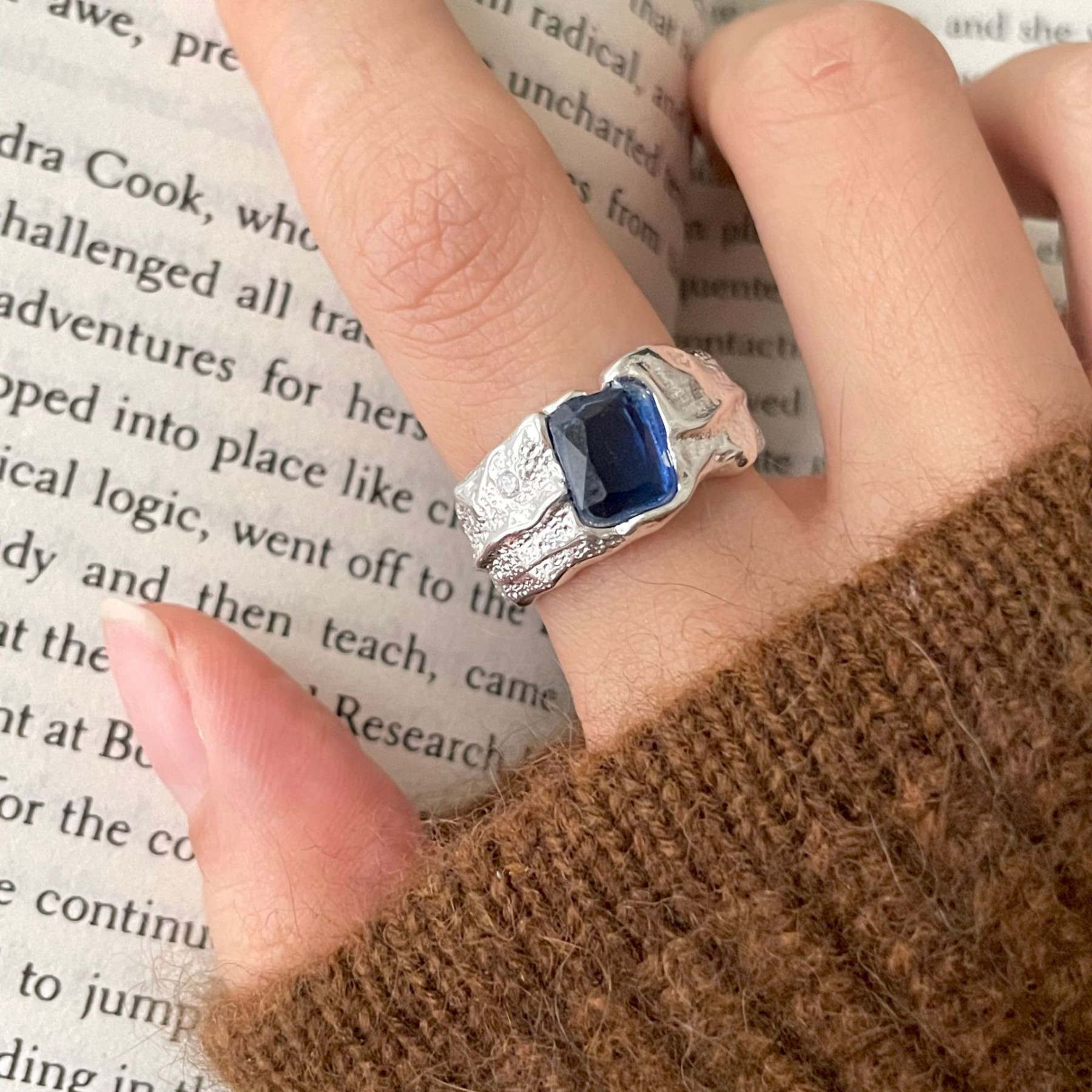 s925 sterling silver chic unique hollowed square adjustabl ring